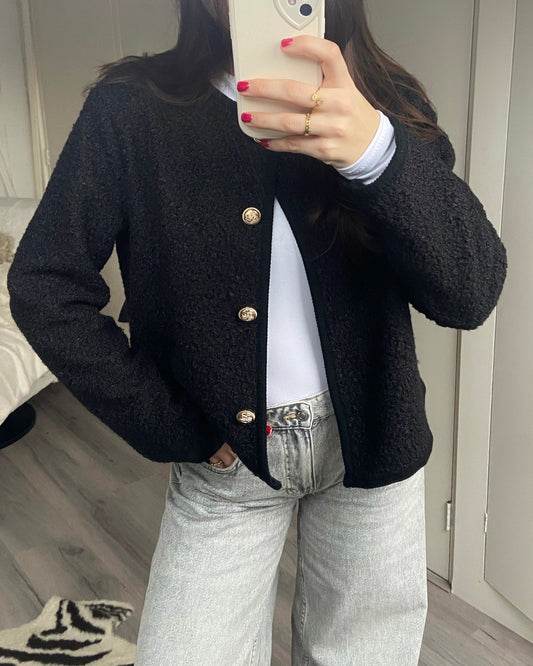 Uitverkocht‘Fluffy fav’ jasje zwart