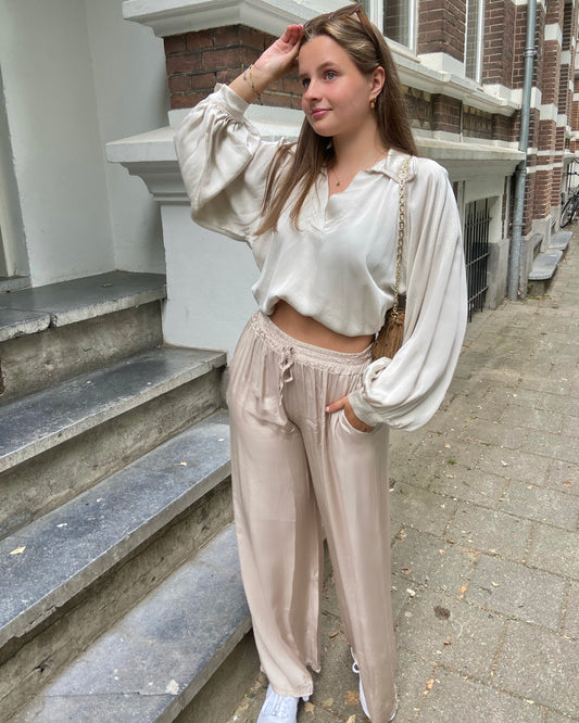 Uitverkocht‘Beachy days’ broek beige