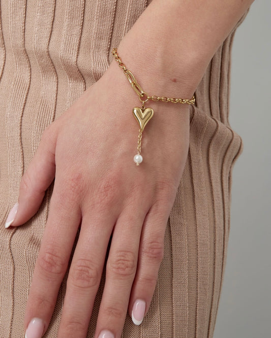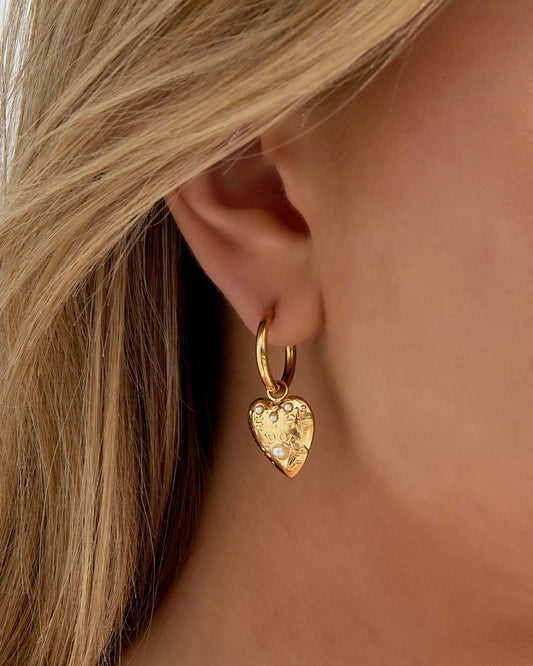 ‘Pearly heart’ oorbellen goud